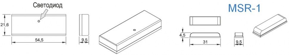 Габариты датчика 54,5 х 21,6 х 9,5 мм