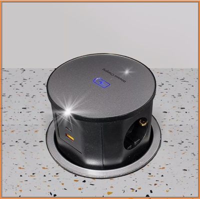 Блок розеток вертикальный POP UP ELIT GLASS с функцией автоматического выдвижения и с функцией беспроводной зарядки.